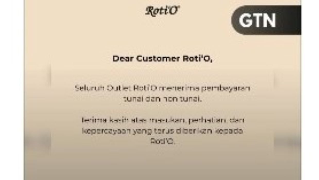 “Seluruh outlet Roti O menerima pembayaran tunai dan non-tunai,” tulis pengumuman tersebut.